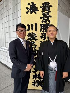 中学生のころから診てきた貴景勝関(現・湊川親方)の断髪式に参加させていただき、髷にハサミを入れさせていただきました。