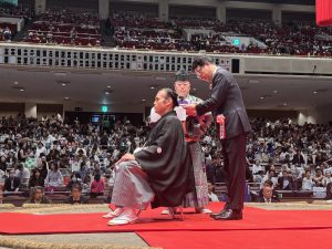 貴景勝関の断髪式に参加し、髷にハサミを入れさせていただきました